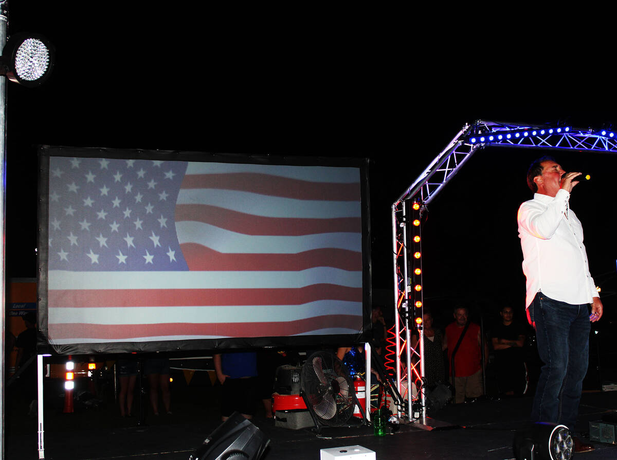 Todd Wolter kicks off the fireworks show with the singing of “God Bless the USA.” He was followed by Tammy Stoker and her son, Johnnie, singing the national anthem.