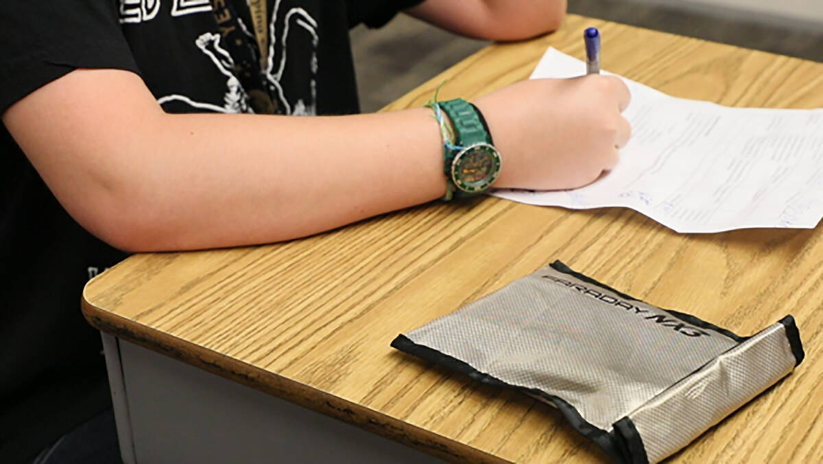 Students will place their phones in non-locking, signal-blocking pouches that will prevent cell phones and other devices from sending or receiving signals while inside the pouch.