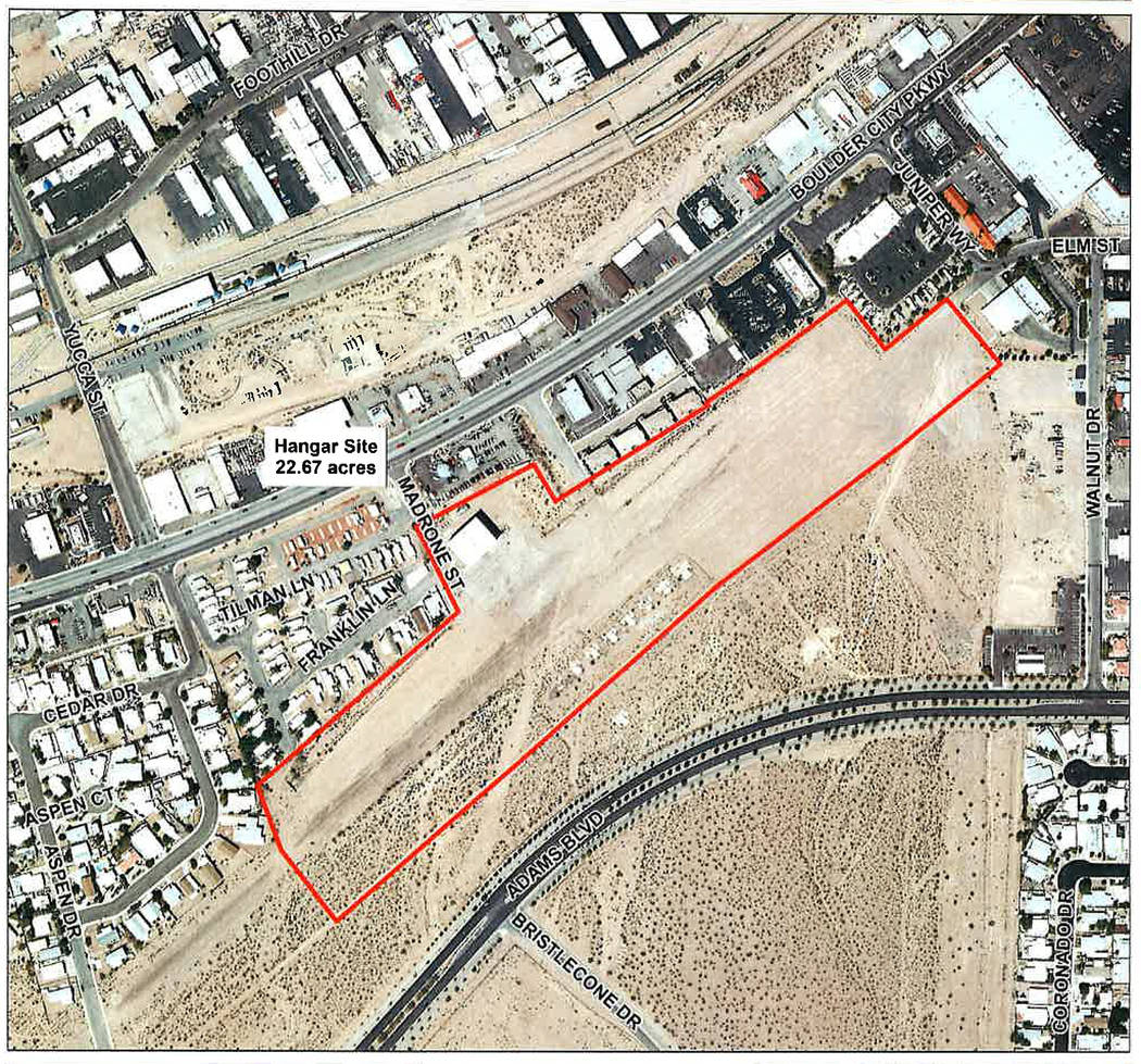 The old airport property is at 1401 Boulder City Parkway and encompasses 22.67 acres of land. It was the first airport in town and was dedicated Dec. 17, 1933.
