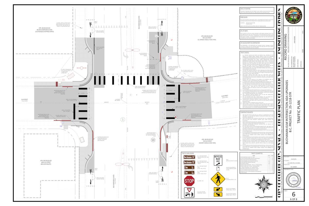 This project will consist of curb extensions, new ADA sidewalk ramps, new pedestrian-activated rapid flashing beacons, bike ramps, new signs and crosswalk markings.