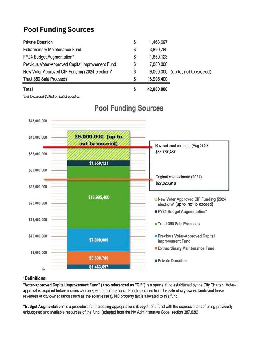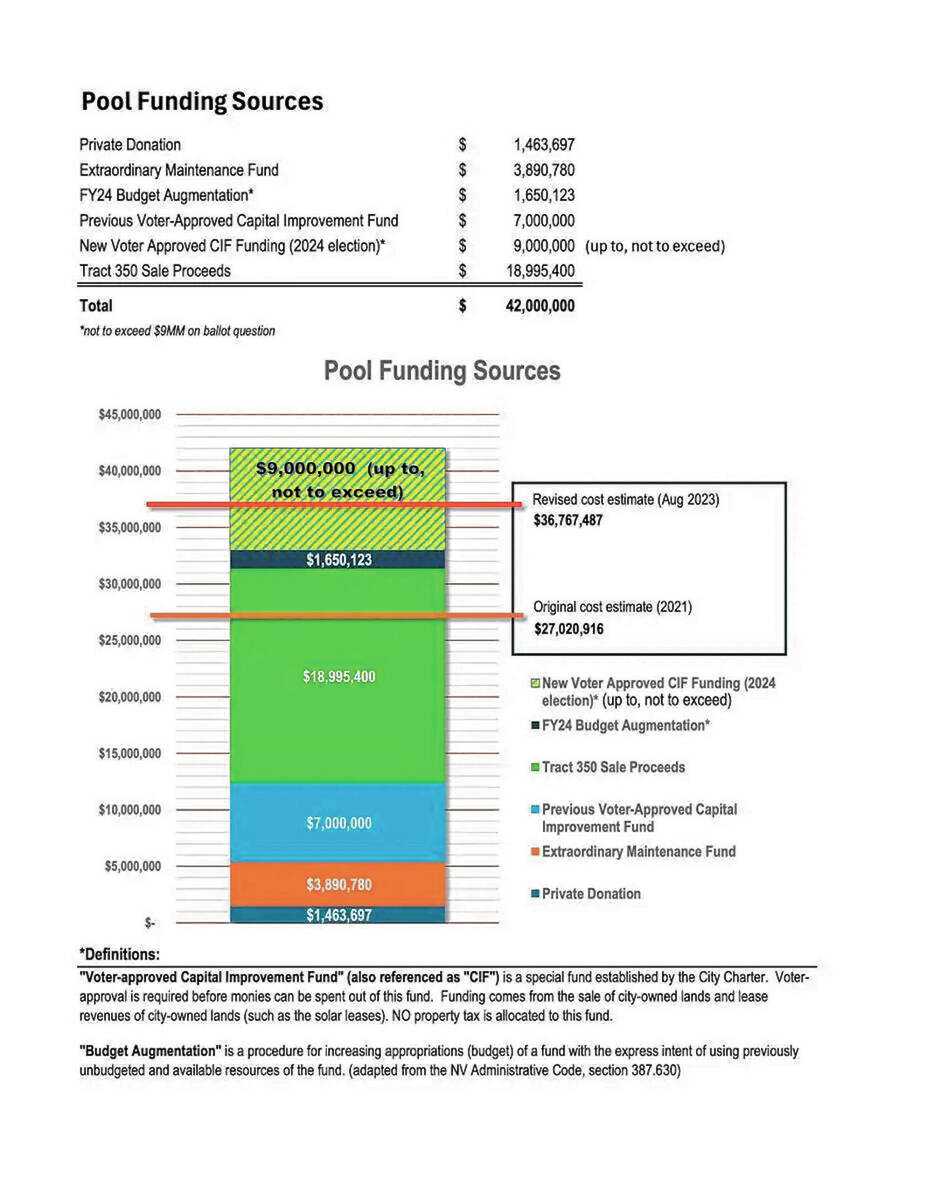 The biggest controversy about the pool has not been about the need to replace the current one, which is more than 40 years old and that was built on top of the same site as an earlier municipal pool. It’s always been about the cost. As currently planned, private donations totaling almost $1.5 million will be augmented by $3.8 million from the city’s extraordinary maintenance fund, $1.65 million from the 2024 budget that was never spent, nearly $19 million from the sale of Tract 350 to Toll Brothers, as well as a total of up to $16 million that voters have approved to be spent from the Capital Improvement Fund.