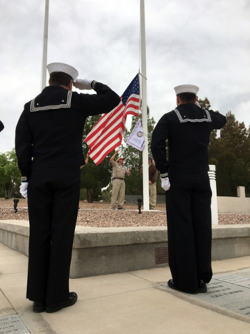 The ship’s flag was lifted to half-mast over the heads of three uniformed naval officers and cemetery staff at noon Friday, at the same time identical flags were being raised in Carson City on the State Capitol grounds and in Pearl Harbor, Hawaii.