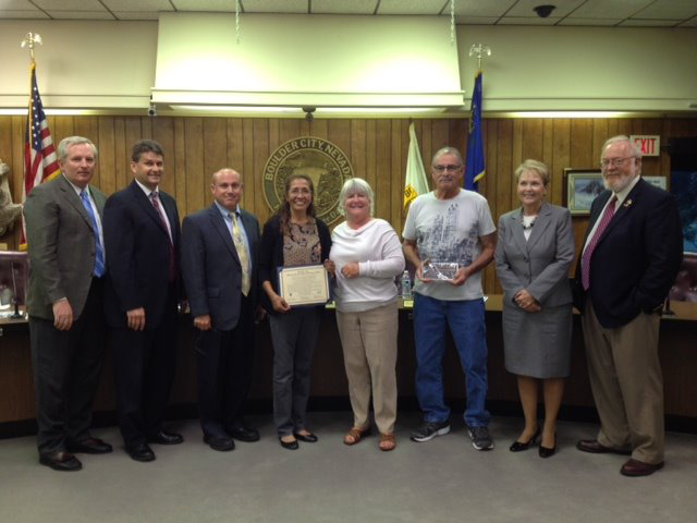 The adjustments he made to his garage, which was originally a carport when the house was built for Hoover Dam workers in the 1930s, earned him and his wife, Gloria, the Boulder City Historic Preservation Award for 2014. The award was presented during Tuesday night’s City Council meeting.
