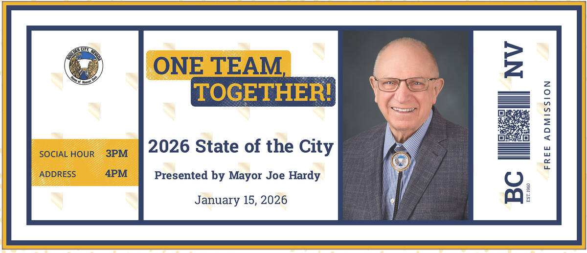 “I chose this theme because so many things that happen in Boulder City are the result of teamwork,” Hardy said last week. “Whether it’s working with residents to address accessibility concerns, organizations like Emergency Aid and Lend a Hand helping those in need, the FAA providing funding to the airport, area police and fire departments responding to dangers and threats, or the Regional Transit Authority of Southern Nevada funding major projects on, and under, our streets, the city and our residents benefit greatly from partnerships and teamwork.”