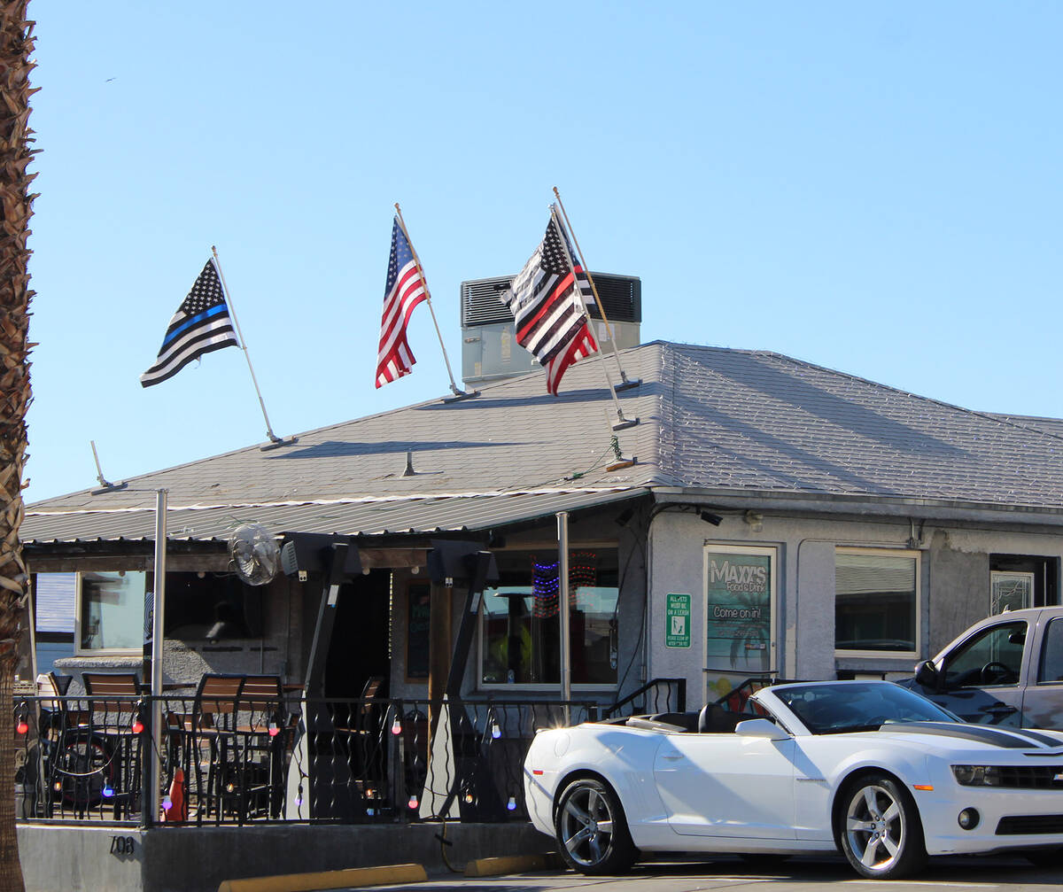 The popular watering hole on Nevada Way became perhaps the most visible of these when they began flying large Trump flags from the roof last summer, about four months prior to the election. Since the election, the Trump banners have been replaced with four large American flags.