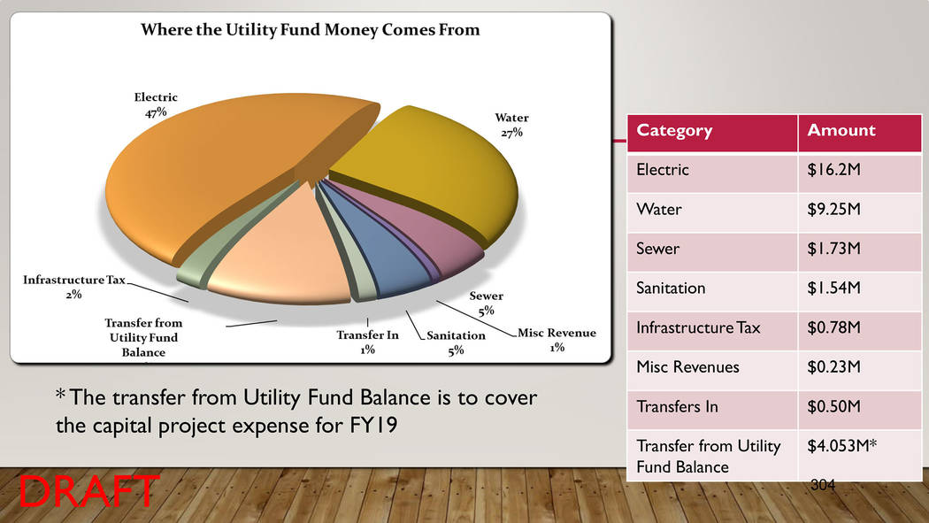 It includes has a general fund budget of approximately $33 million, which is about $126,000 higher than the previous version presented. Its utility fund budget is approximately $34.3 million, almost $5 million less than before.