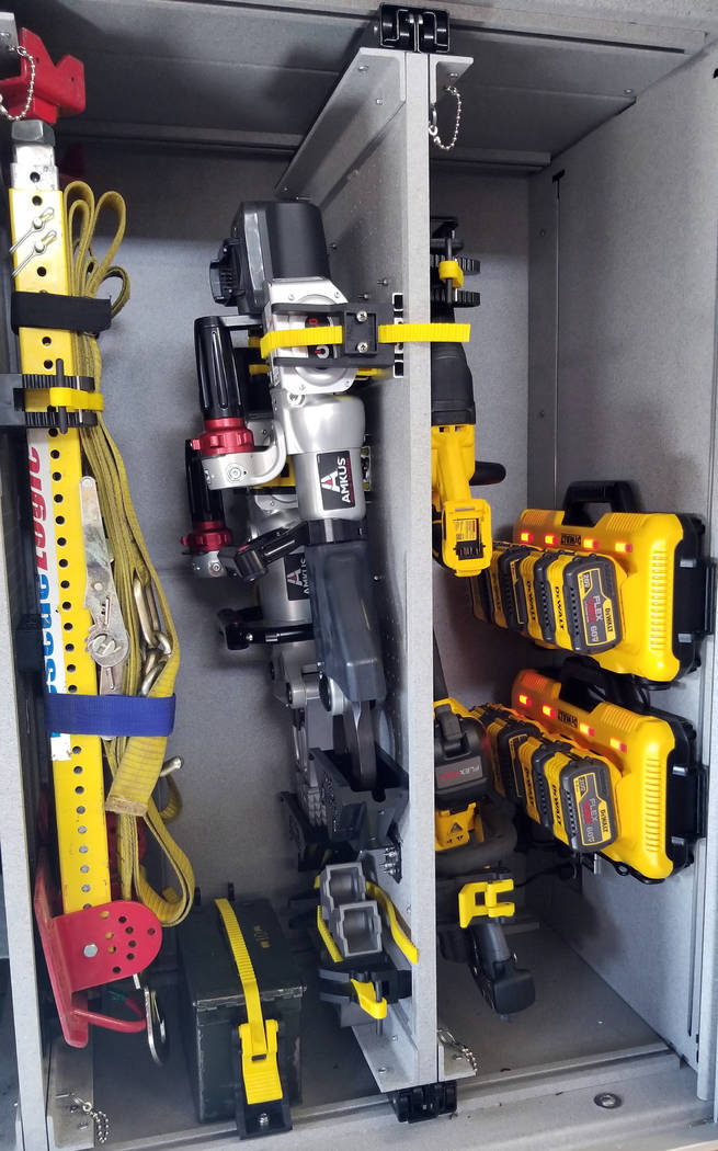 “The battery-powered … tools are newer technology that affords the crews all of the benefits of the older equipment with the added benefit of significantly reduced weight,” Gray said. “This allows them to move it to where it is needed quicker and without all of the hoses required by the older systems.”
