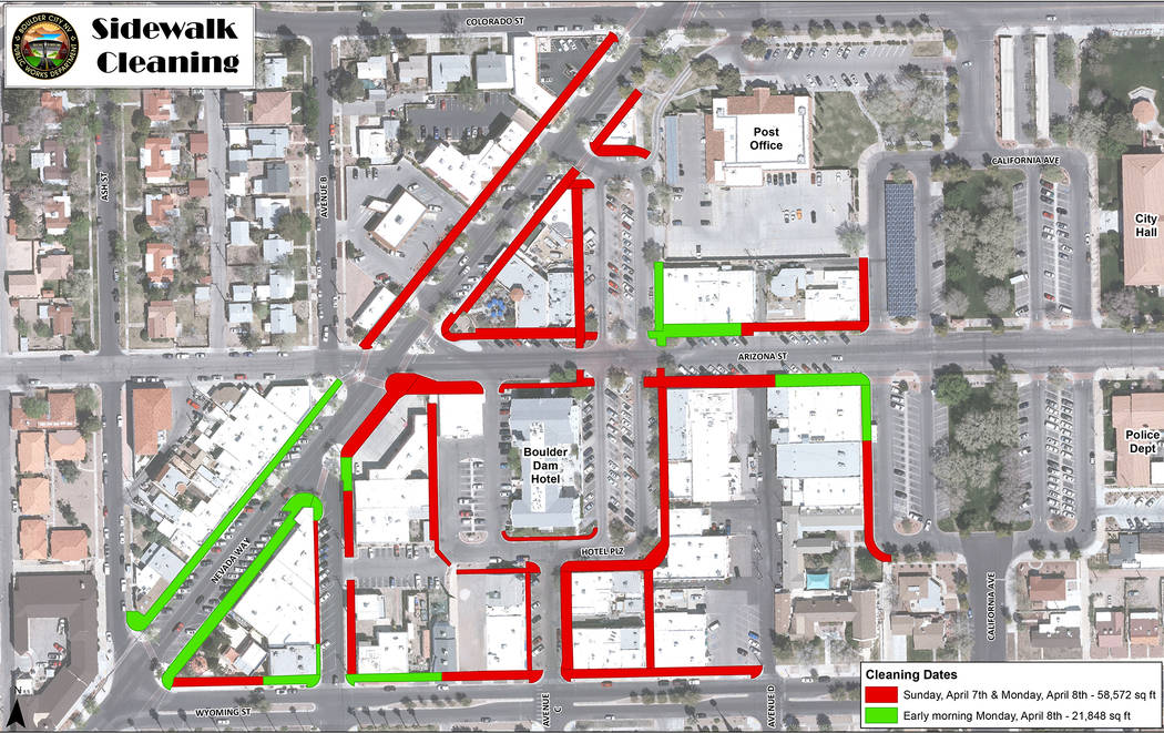 Boulder City staff will be power washing the downtown sidewalks for two days in April to prepare for a community event.