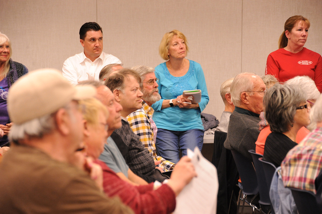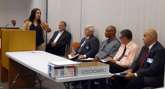 Also attending the standing-room-only event at Boulder City Library were candidates Rich Loudin, Fritz McDonald, John Milburn, James Stuckey and Cam Walker. Eric Lundgaard told event organizers in advance he didn’t agree with the format of the candidates night and would not attend.