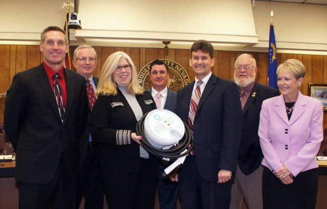As she donated the chargers, she said “this little town puts them to shame with their vision,” referring to the city’s larger neighbors in the Las Vegas Valley.