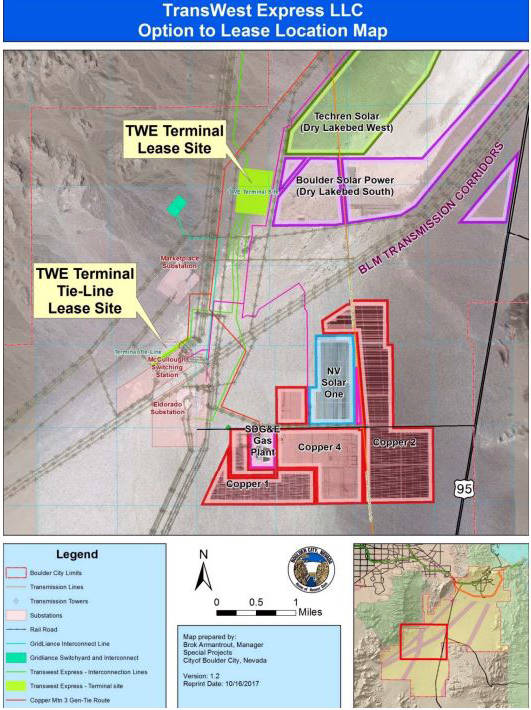 According to Bill Boyd, TransWest Express’ executive vice president and chief operating officer, the line from Wyoming to the Eldorado Valley in Boulder City is 730 miles long. The company has been working with the city to lease 168.5 acres of land to house part of it.