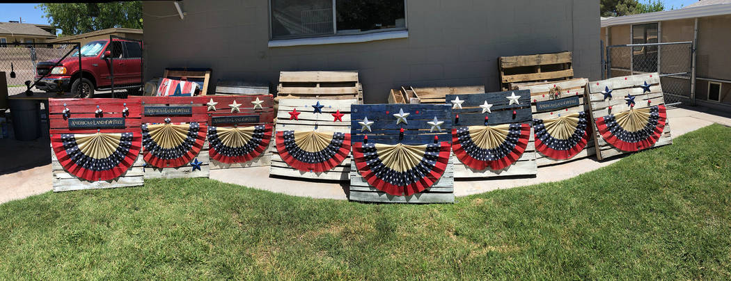 Some of this year’s floats will again feature the patriotic pallets, including new ones that were created using pieces from old polling booths that were found under the bleachers at the gym in the recreation building.
