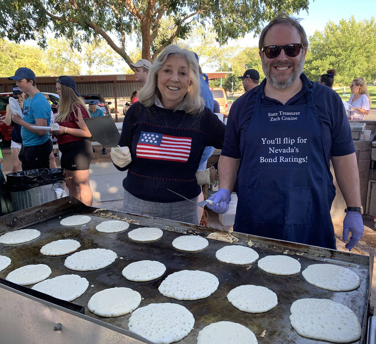 To start the day, the smell of pancakes and sausage filled the air above Bicentennial Park as the Rotary Club of Boulder City held its annual Damboree breakfast. Several politicians were seen cooking and handing out pancakes for a line of people that seemed never-ending.