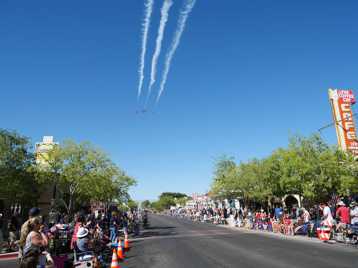 The Boulder City Veterans Flying Group kicked off the Damboree parade in style as they flew over Nevada Way in formation. The group made two passes over the heart of town. The parade then had a little bit of everything with pink elephants, muscle cars, horses and a train.