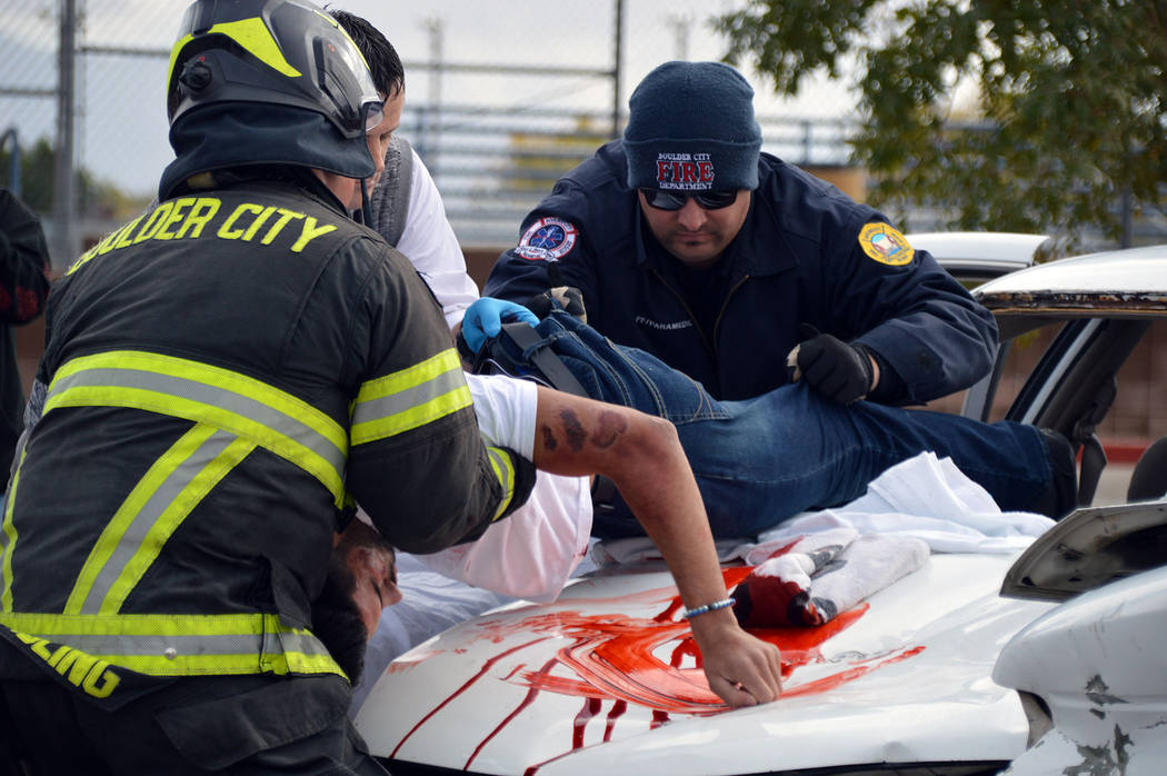Boulder City Police officer Dave Krumm, who has been the school resource officer for 10 years, said this was the fifth Every 15 Minutes program he has seen at the school, but the first one that his daughters have been involved in.