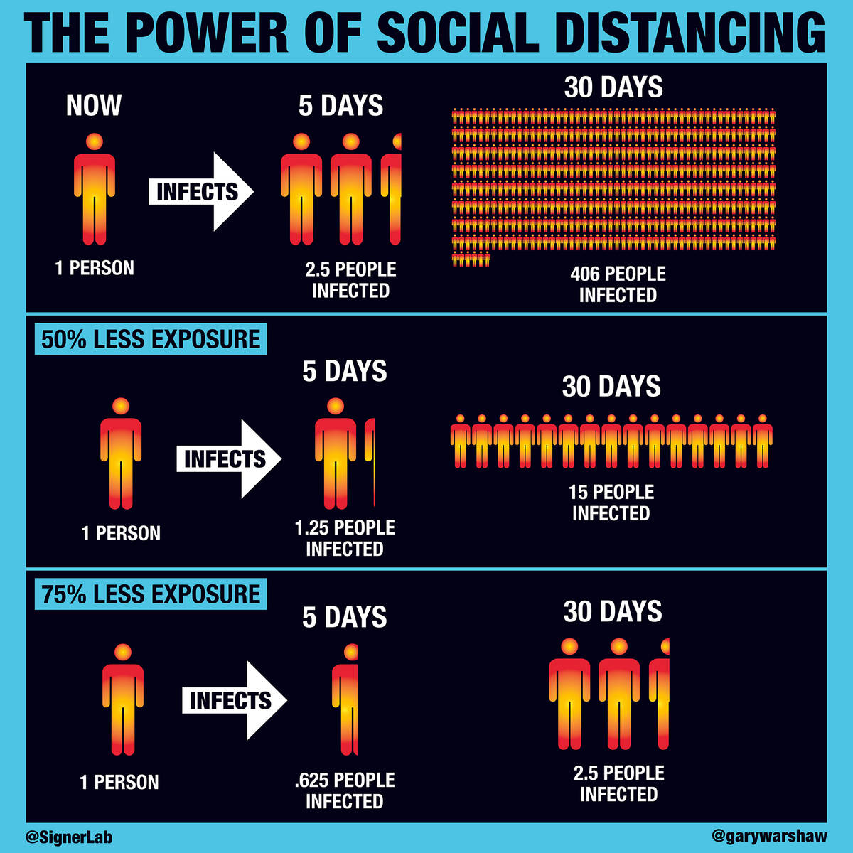 Recently, Signer and his art director, Gary Warshaw, created a graphic to demonstrate how social distancing can help stop the spread of COVID-19.