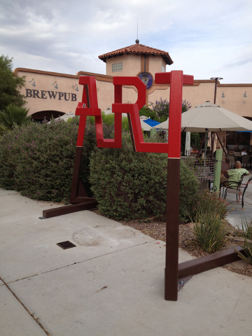 His new sculpture, “Art Tubular,” spells out the word art and was made from a single piece of steel tubing. The best place to view the art, which is on Nevada Way in front of Boulder Dam Brew Pub, is marked on the sidewalk. He developed this signature style of sculpture in 1973.