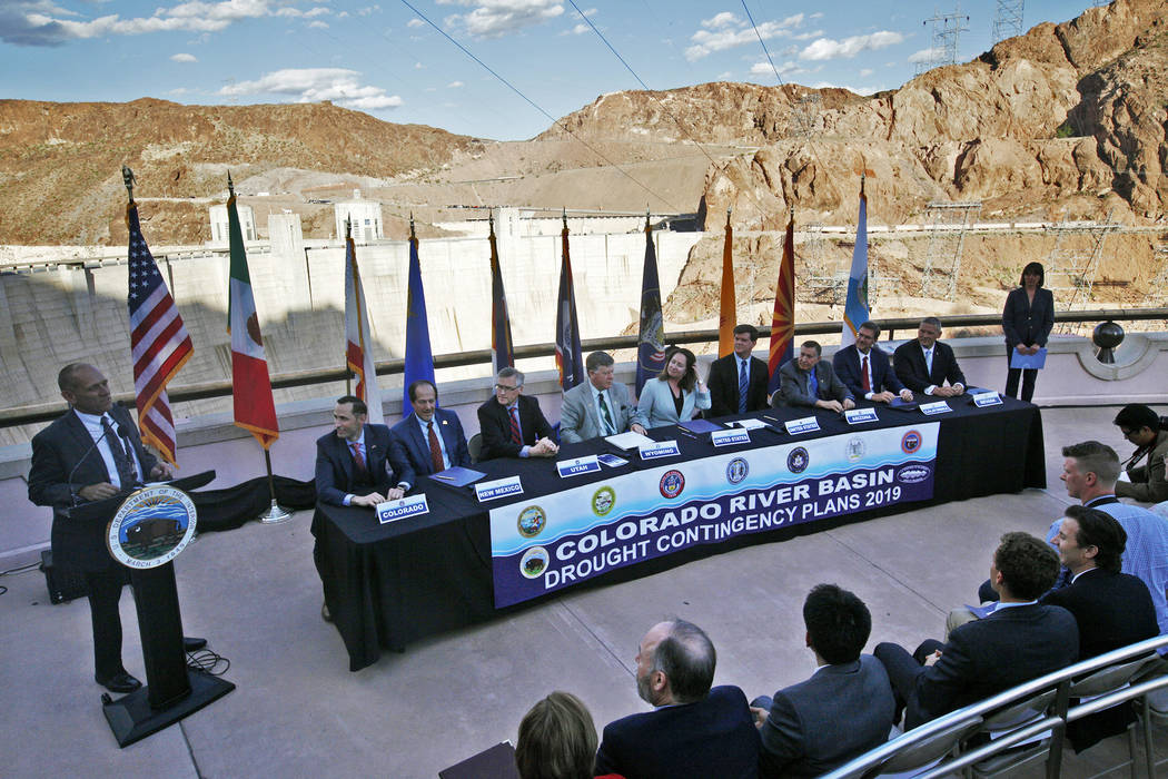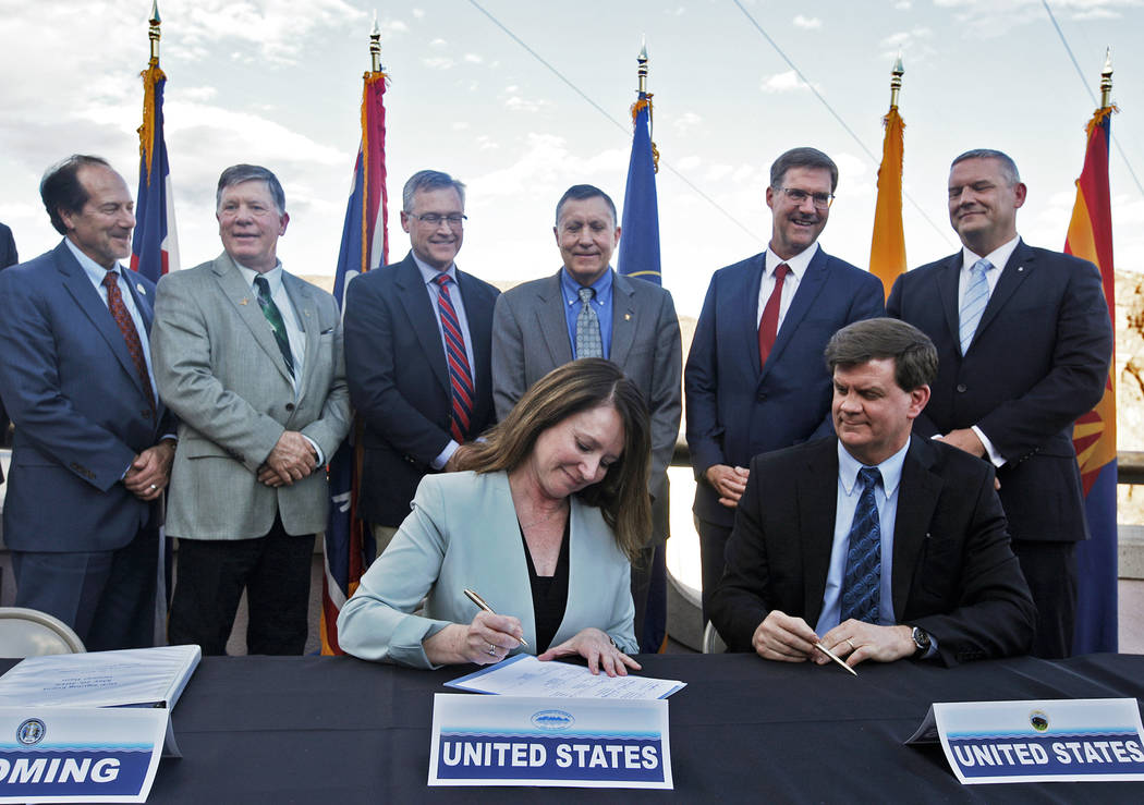 From an observation deck overlooking the dam, federal regulators and representatives of the seven states that share the river signed the last of the legal documents needed to enact the drought contingency plans.
