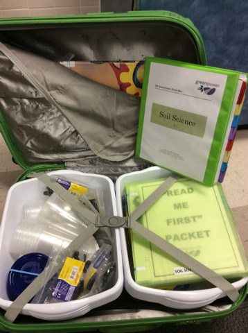 In addition to items necessary for experiments, the green boxes contain books, lesson plans and all materials teachers will need.