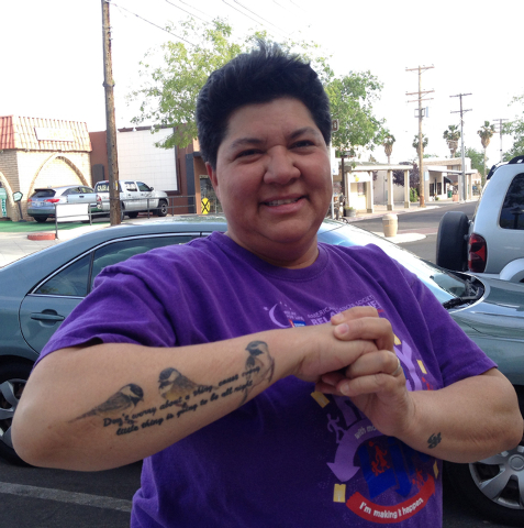 When she found out she had beaten cancer, she got a tattoo on her right forearm of three black and gold chickadees with a song lyric that from Marley’s famous song “Three Little Birds.”