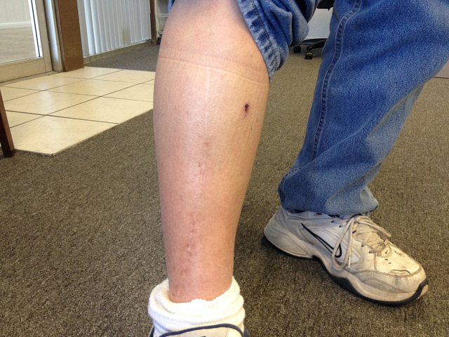 “I have a leg and it works,” Medeiros said as she gazed down at the long, vertical scar that runs from the top of her foot to the bottom of her knee.