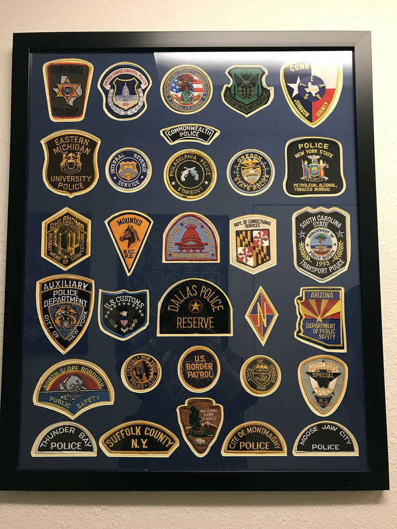 Friends of the Boulder City Police Department donated a collection of law enforcement badges that had been in storage. The group had the badges mounted and framed; they now hang in a hallway in the Boulder City Police Department.