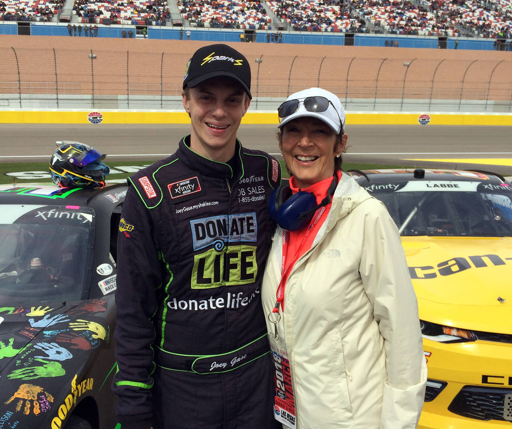 Garris’ story was brought to the attention of NASCAR Xfinity Series driver Joey Gase, whose mom, Mary, died approximately seven years ago, also of a brain aneurysm, when he was 18 years old. Gase and his family chose to have her organs and tissue donated, which helped 66 people.