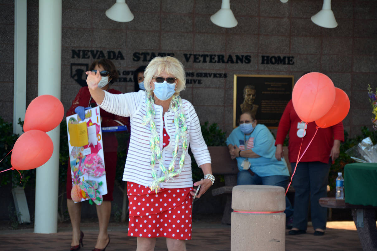 Linda Gelinger, administrator of the Southern Nevada State Veterans Home, started retirement with a festive parade as horns honked, flags waved and passersby offered hearty congratulations.