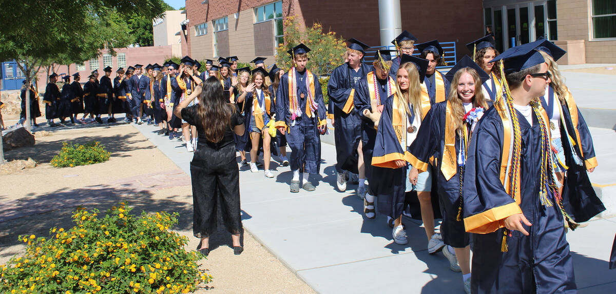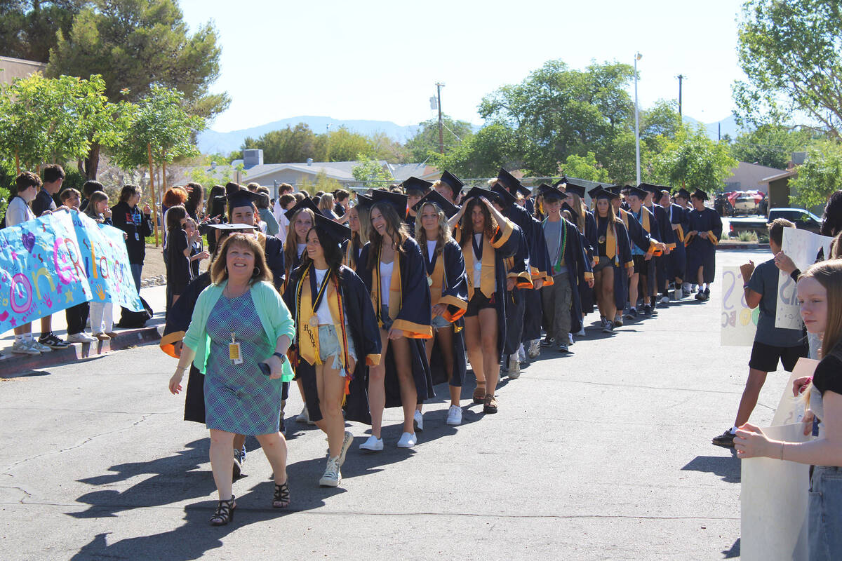 “This Friday marks the 10th anniversary of our Grad Walk tradition at Boulder City High School, and reaching this milestone is incredibly meaningful,” she said. “What began a decade ago as a simple walk through the halls of BCHS after the senior breakfast has grown into a city-wide celebration. That first year was uniquely special—it was the final time seniors walked the halls of the original campus before construction began, and it was also my first year as principal. I wasn’t quite sure how it would all go, but the power of that simple walk—the emotion, the nostalgia, the pride—was unforgettable.”