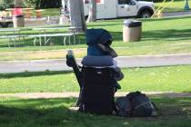 Boulder City Utilities Director Joe Stubitz tried out the police department’s “drunk goggles,” which simulates the effects of being under the influence of alcohol. Those trying them out were instructed to walk in a straight line.
