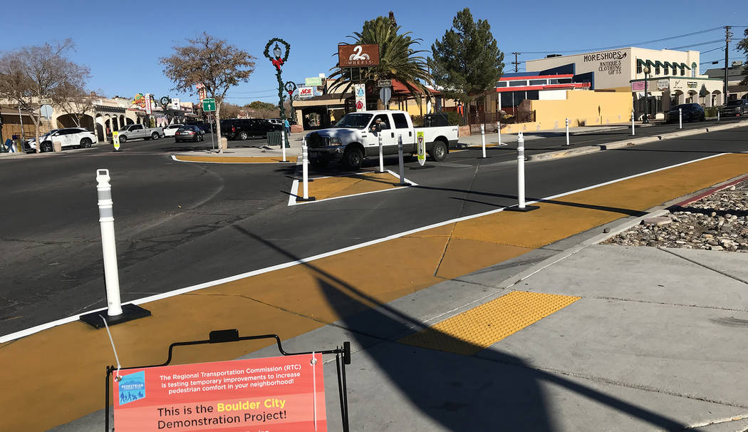 The improvements are part of a study by the Regional Transportation Commission of Southern Nevada to identify best practices for safe pedestrian usage of intersections throughout the region. The Boulder City intersection is one of six being studied for 30 days.