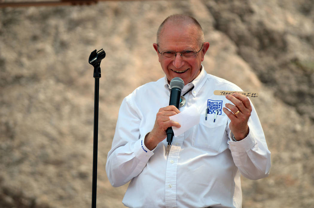 The celebration, witnessed by a small herd of bighorn sheep overlooking the interstate, featured performances by Boulder City High School’s marching band and cheerleaders, along with the Vegas Golden Knights’ Drumbots and cheerleaders.
