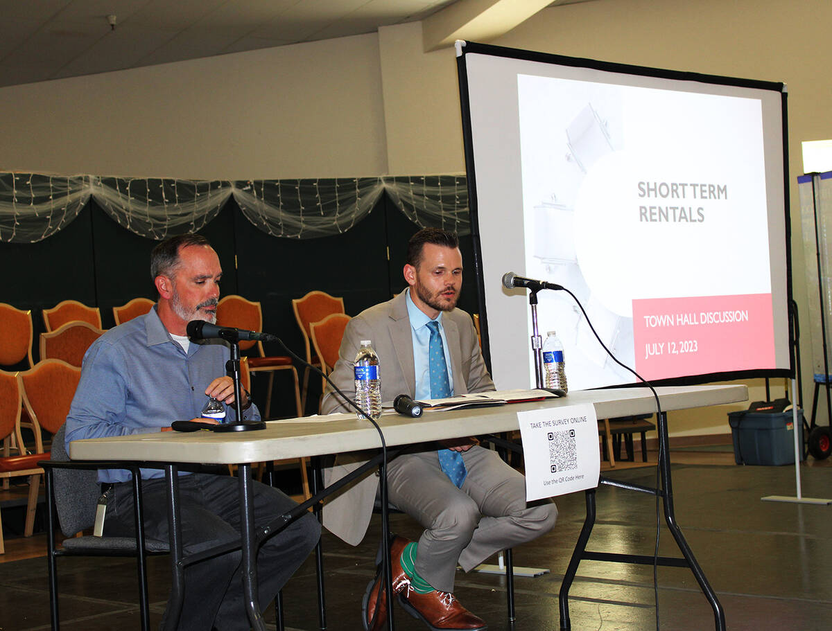 Community Development Director Michael Mays stepped up to the mic to begin the formal process of a public hearing saying, “Staff is proposing amendments to Title 11 that clarify the prohibition of short-term rentals and general enforcement and declaring violations of Title 11 including the operation of short-term rentals and other prohibited home occupations as public nuisances subject to civil citations and fines as set forth in Title 8, Chapter 1 of the city code.”