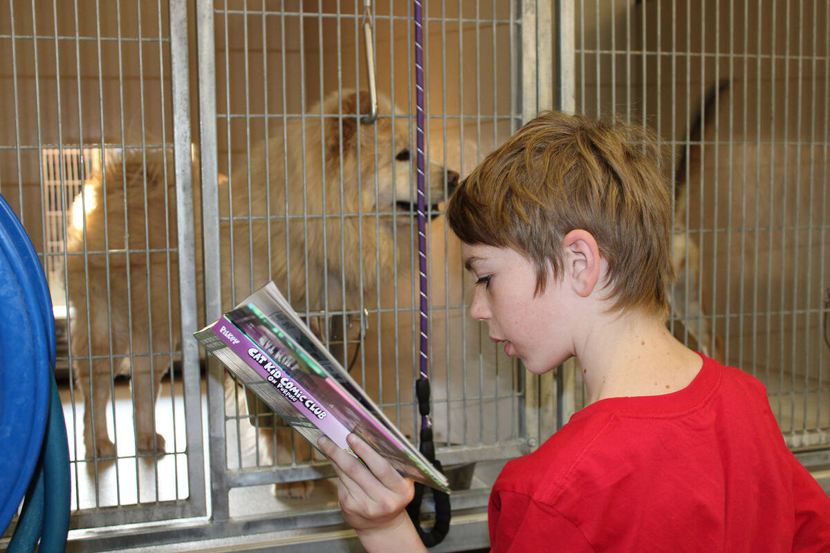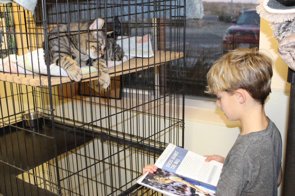Eventually, many calmed down and enjoyed the interaction with those reading to them at the Boulder City Animal Shelter. The cat room, as expected, was far calmer. But the result was the same — the children got the opportunity to practice reading aloud from books of their choice while the animals received the much-appreciated attention given to them.