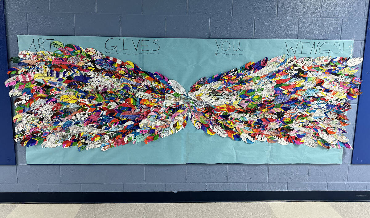 In the days since his passing the students at King were visited by Mr. Kingen’s wife and family. They presented her with handmade cards, pictures, and a mural that they created using colored paper feathers. The mural read, “Art Gives You Wings.” While all of us are deeply saddened by Mr. Kingen’s passing, we know that the spirit of creativity that he taught in art class will live on in the hearts of his students.