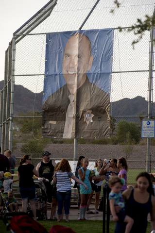 Leach, a longtime Boulder City resident and Las Vegas police officer, died in a car accident while on duty in 2009. To commemorate his life and the effect he had on everyone he encountered, a baseball field at Veterans’ Memorial Park was renamed in his honor during Tuesday’s National Night Out, a yearly gathering that helps to boost crime-prevention awareness by bringing members of the community closer to local law enforcement.
