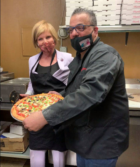 After leaving the senior center, Lee and McManus visited Vinny’s Pizzeria, which recently received a $10,000 grant to help weather the pandemic.