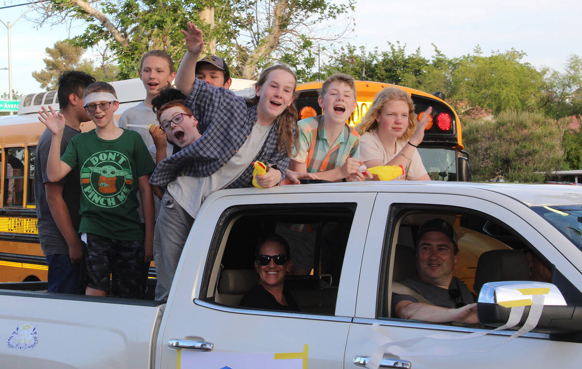 Ever since 2020 when COVID prevented people from gathering, Garrett Junior High created what’s now become a new tradition in Boulder City. The promotion parade starts at the high school, goes by Garrett and makes its way by King and Mitchell elementary schools. The parade showcases students who are advancing on from kindergarten, second, fifth and eighth grade.