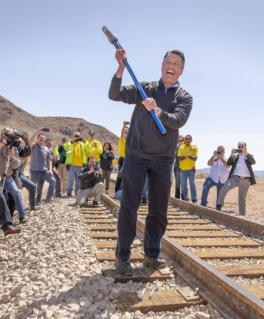 Local, state and federal officials gathered to mark its opening with a special ceremony that included Gov. Brian Sandoval and U.S. Sen. Dean Heller driving special “silver” spikes to reconnect the rails.