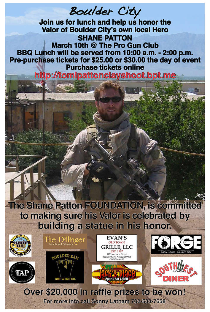 The fifth annual clay shoot will be held Saturday, March 10, at the Pro Gun Club in Boulder City, and all the proceeds from the barbecue lunch will go to the Shane Patton Foundation to erect a statue in honor of Patton, a 2000 Boulder City High School graduate and Navy SEAL who was killed in 2005.
