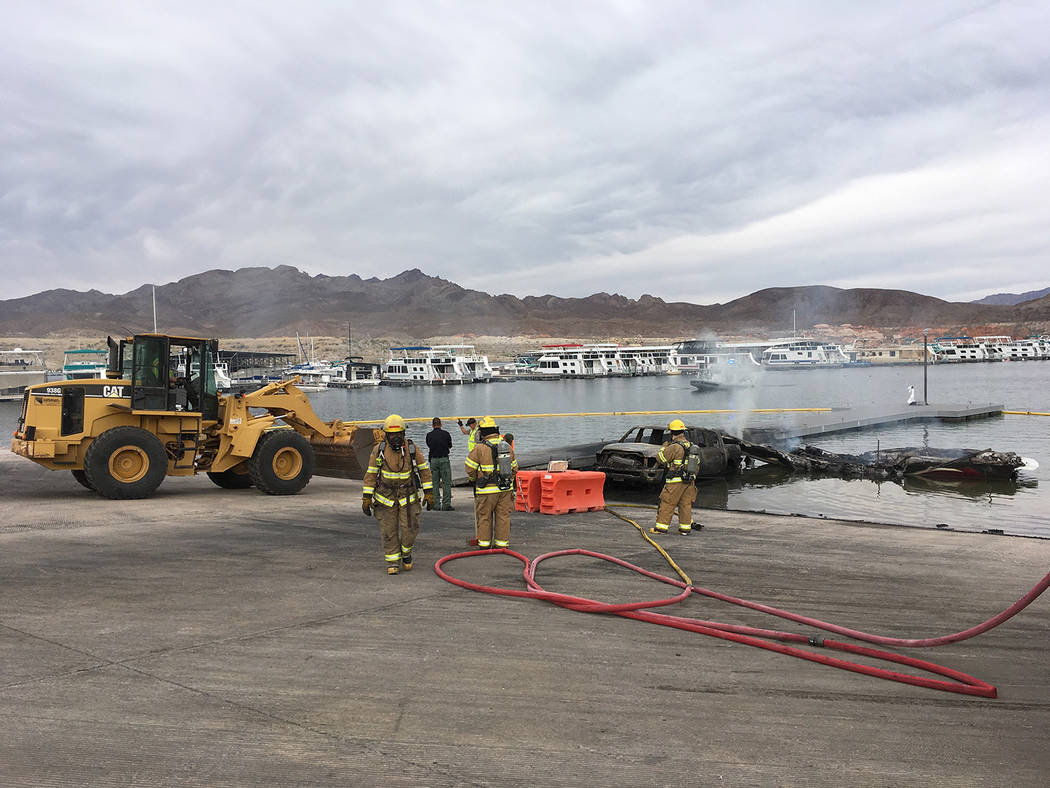 According to the National Park Service, the fire was reported around 12:30 p.m. to the Lake Mead Interagency Communication Center. Rangers and firefighters responded and found a Dodge pickup truck, the boat and the trailer engulfed in flames.