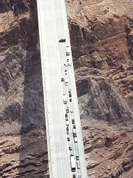 The Nevada Highway Patrol, Las Vegas and Boulder City police, National Park Service rangers from the Lake Mead National Recreation Area and Arizona Department of Public Safety responded to the scene, quickly shutting down U.S. Highway 93 and evacuating motorists from the bridge. Tourists on the dam walkway were instructed to shelter in place.