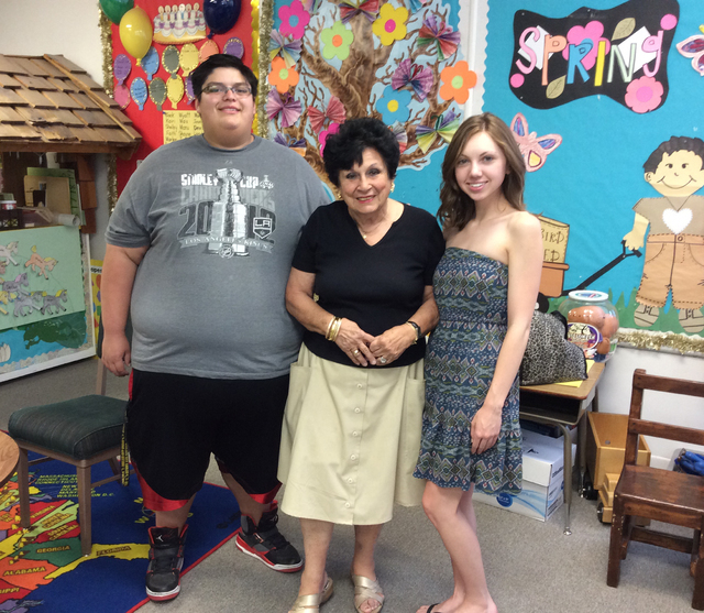 Oaklane Preschool Academy presented scholarships to former students during Boulder City High School’s annual Scholarship Night May 19. Carole Gordon, center, owner of Oaklane, congratulates Josh Jarvis and Alison White. Jarvis plans to attend UNLV where he will major in business administration; he said he would like to own and operate a hotel and restaurant some day. White will attend University of Nevada, Reno, where she will major in psychology so she can become a family therapist.