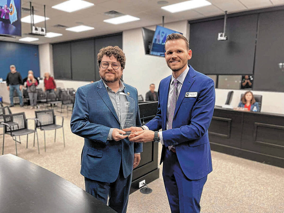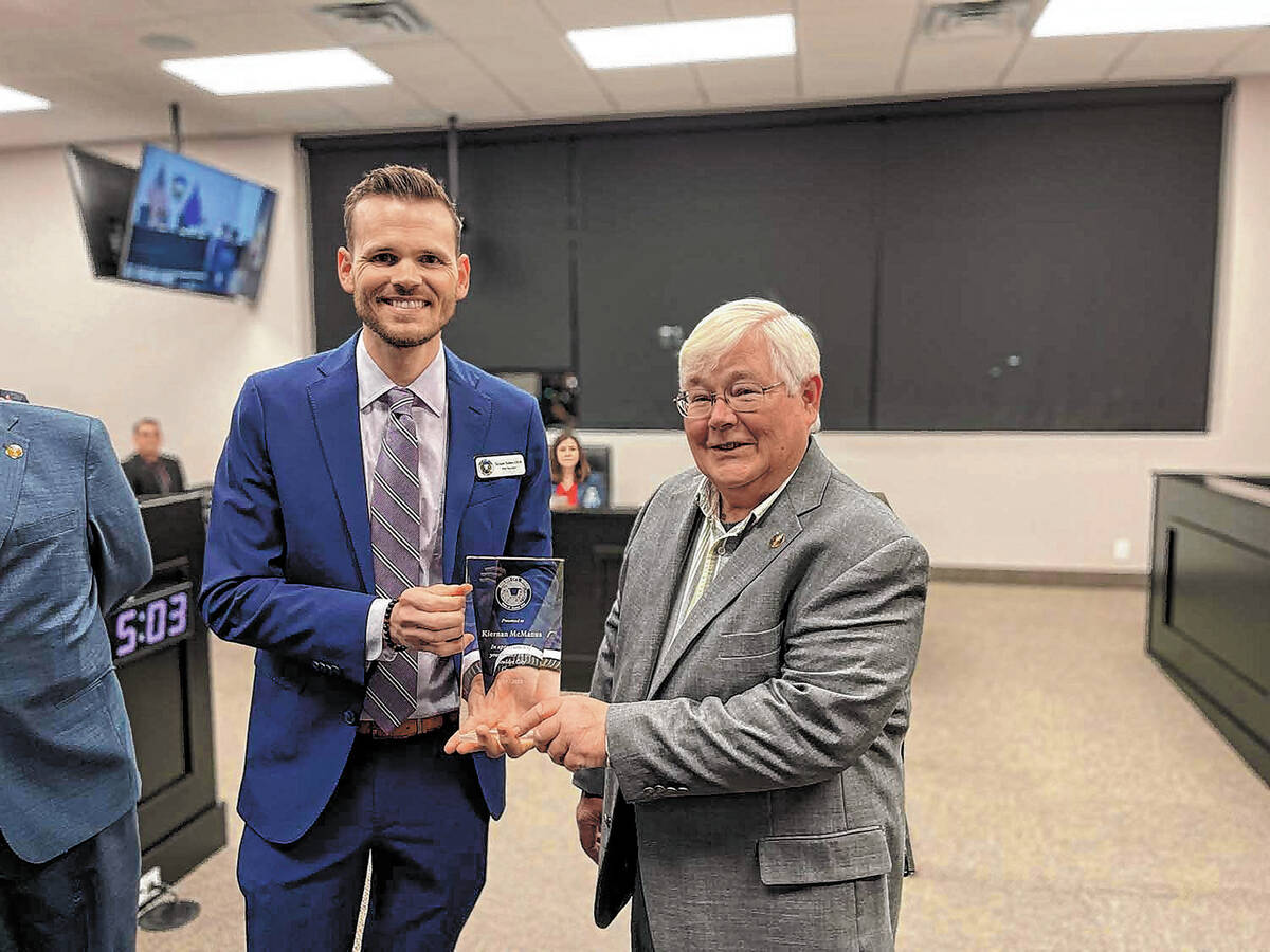 City Manager Taylour Tedder presented Mayor Kiernan McManus and Councilman James Howard Adams with awards to commemorate their time on the council.