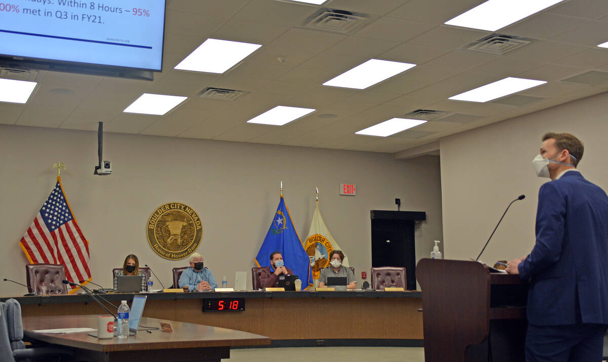Pelletier was requesting council pass an ordinance allowing $170,000 to be used for COVID test kits and personal protective equipment, $50,000 be reimbursed to Emergency Aid of Boulder City, $7.9 million in expected water and wastewater capital improvement projects in the 2022 and 2023 fiscal years and $2 million in water conservation projects at the city’s golf courses.