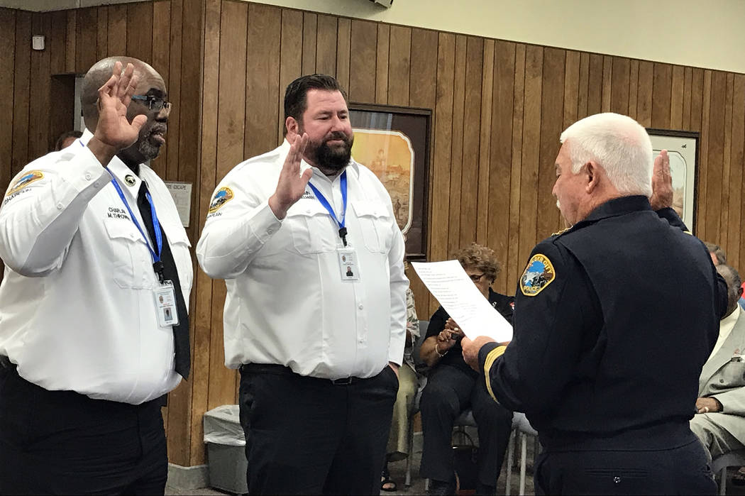 At the swearing-in ceremony July 11, Shea also swore in Ruby Perkins as the new police support services manager. She was promoted to that position from her previous one of BCPD communications and records supervisor. Additionally, Lauren Christian was sworn in as a full-time emergency dispatcher. She used to work as a part-time dispatcher.