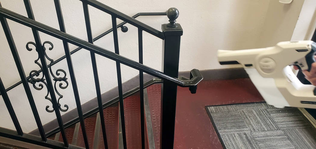 Communications Manager Lisa LaPlante said the custodial staff is spraying frequently touched areas with a Protexus Electrostatic Sprayer, which allows areas to be cleaned more effectively.