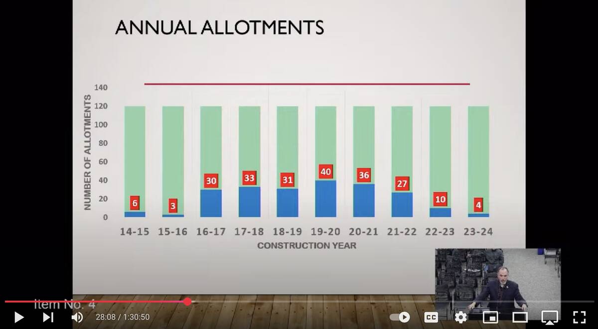 That rating will now be forwarded to the city council for final approval of allotments at which time the developer can begin the process of obtaining building permits. If building has not begun within one calendar year, the allotment is vacated.