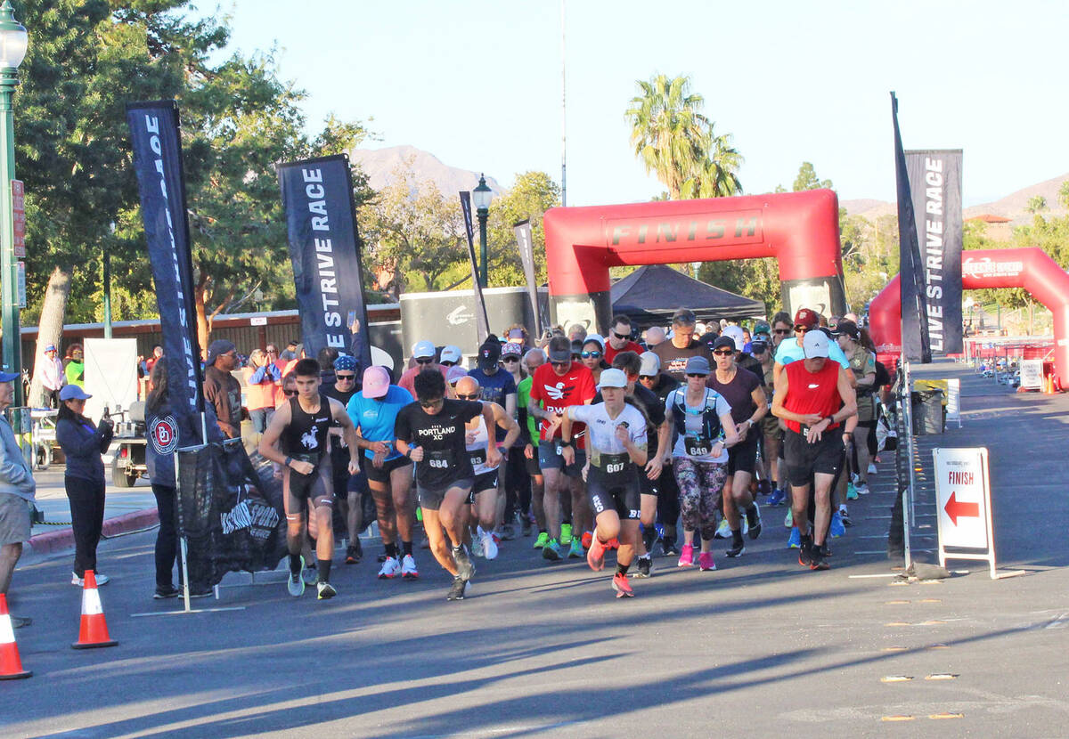 Competitors in the 5K and 10K runs take off from the starting line Saturday.