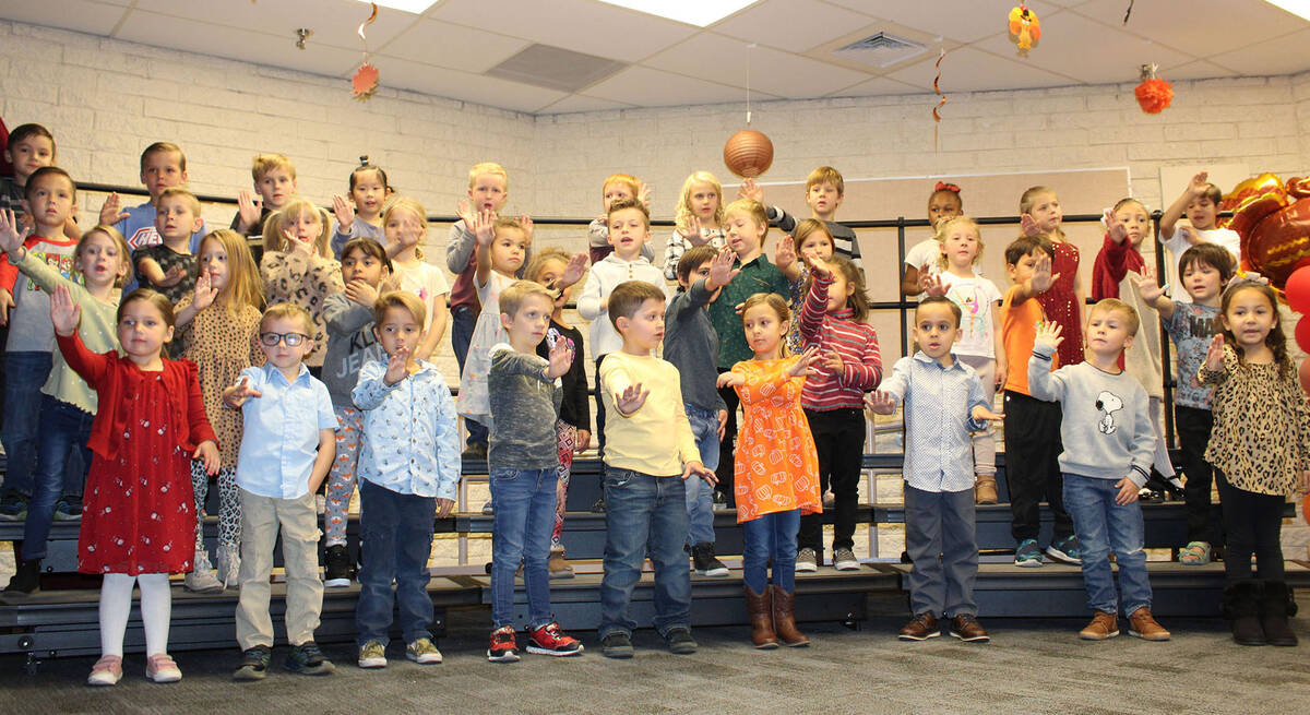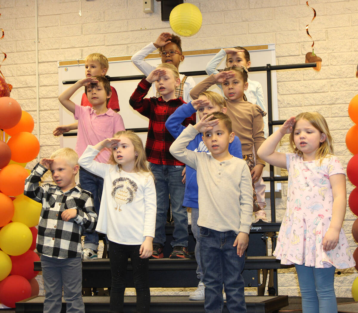 Kindergarten students from Andrew J. Mitchell Elementary entertained family and teachers Tuesday with their Thanksgiving program. Songs included “I’m a Little Turkey,” “The Turkey Dance” and “Mom’s Been Working in the Kitchen.”